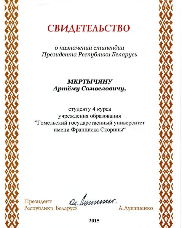 Коллектив физического факультета поздравляет студентов гр. АС-47 Мкртычяна Артема и Дробышевскую Ольгу с назначением стипендий Президента Республики Беларусь.
