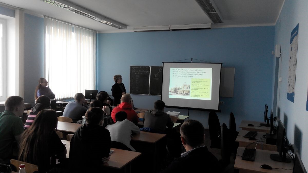 Профессор института компьютерных наук, Румынской академии (Румыния, г. Яссы) Mihaela Luca прочитала курс лекций для студентов 2 курса специальностей АСОИ и «Программируемые мобильные системы» по темам: 1. Some researches in fuzzy logic for automation: an overview. 2. A review of several applications of FL in modeling and in 1D/2D signal processing. 3. Image featuring in LAB colour space. 4. Iris features using DTCW transform in texture evaluation for biometrical identification.