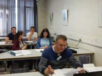 От нашего университета в тренинге участвовали члены рабочей группы программы Erasmus+ преподаватели факультета физики и информационных технологий: доцент кафедры общей физики Самофалов Андрей Леонидович, доцент кафедры теоретической физики Дерюжкова Оксана Михайловна и старший преподаватель кафедры общей физики Купо Александр Николаевич. Программа тренинга была очень насыщенной, она включала в себя три части: «Использование оборотов разговорной речи в лекциях», «Речевые приёмы в рамках обучения в форме «вопрос-ответ» и «Особенности визуализации учебного материала». Занятия проходили под руководством преподавателя Лёвенского университета Alain Maricau. Занятия были познавательны и эмоциональны, проведены на высоком научно-методическом уровне в доступной для восприятия форме. В результате обучения изучены методики чтения лекций на английском языке (технологии «вопрос-ответ» и «feedback», использование интонации и ударений). Расширены возможности владения разговорным и научным английским языком, расширен лексикон используемых в лекциях специальных терминов и идиоматических выражений, улучшена грамматика языка. Освоены методики формирования структуры лекций, коллоквиумов, семинаров, лабораторных и практических занятий с использованием современного академического английского языка. Изучены особенности разговорного английского языка при преподавании специальных дисциплин. Рассмотрена структура использования оборотов разговорной речи для упрощения восприятия научного и учебного материала. Освоены методы включения визуальных эффектов и специальных слов для обозначения, выделения и нумерации графической информации. Приобретён опыт взаимодействия со студентами и коллегами. Получены сертификаты участника тренинга. |