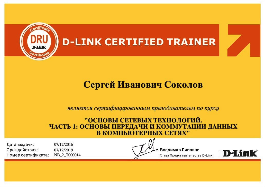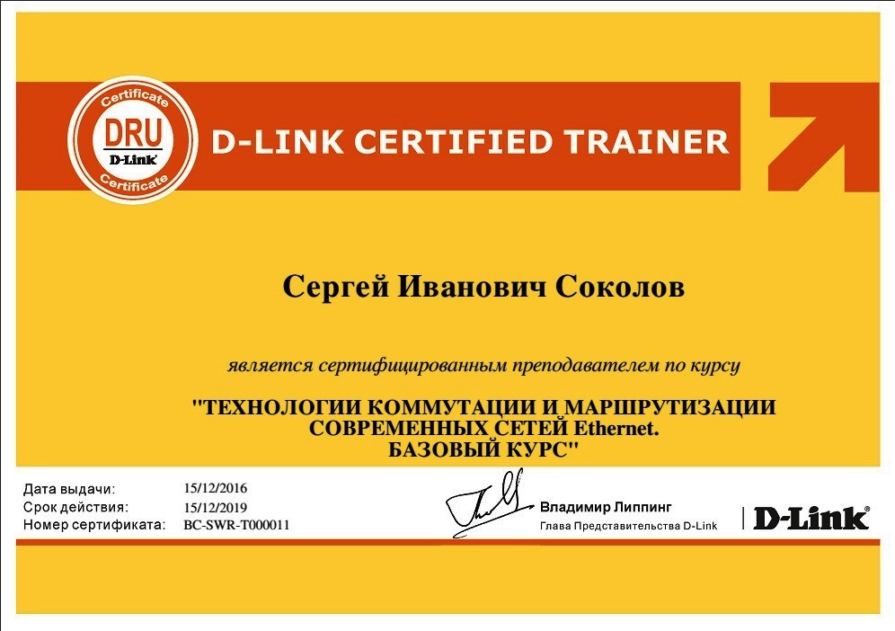 Коллектив кафедры общей физики и факультета от все души поздравляет Грищенко В.В., Побияха А.С., Соколова С.И. с получением статуса "Сертифицированный инструктор D-Link" и желает им дальнейших творческих успехов. |