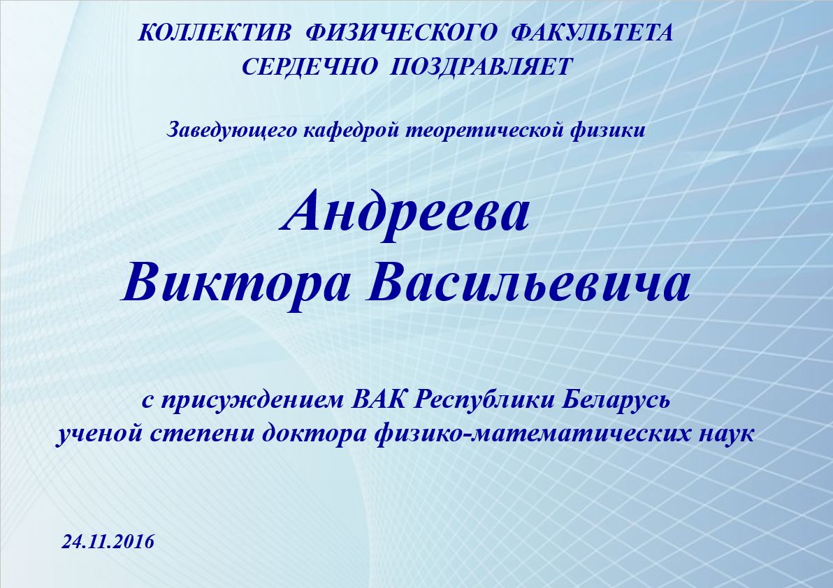 Студентам 3 - 5 курсов. 30.11.2016 (СРЕДА) в 11-00 в ауд. 2-11 состоится встреча с представителями Института тепло- и массообмена имени А.В. Лыкова НАН Беларуси (Минск). Цель встречи - приглашение студентов физического факультета в магистратуру и аспирантуру института.