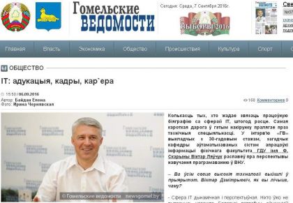 Заведующий кафедрой АСОИ Левчук В.Д. в интервью газете Гомельские ведомости рассказал о перспективах обучения информационным технологиям на физическом факультете.