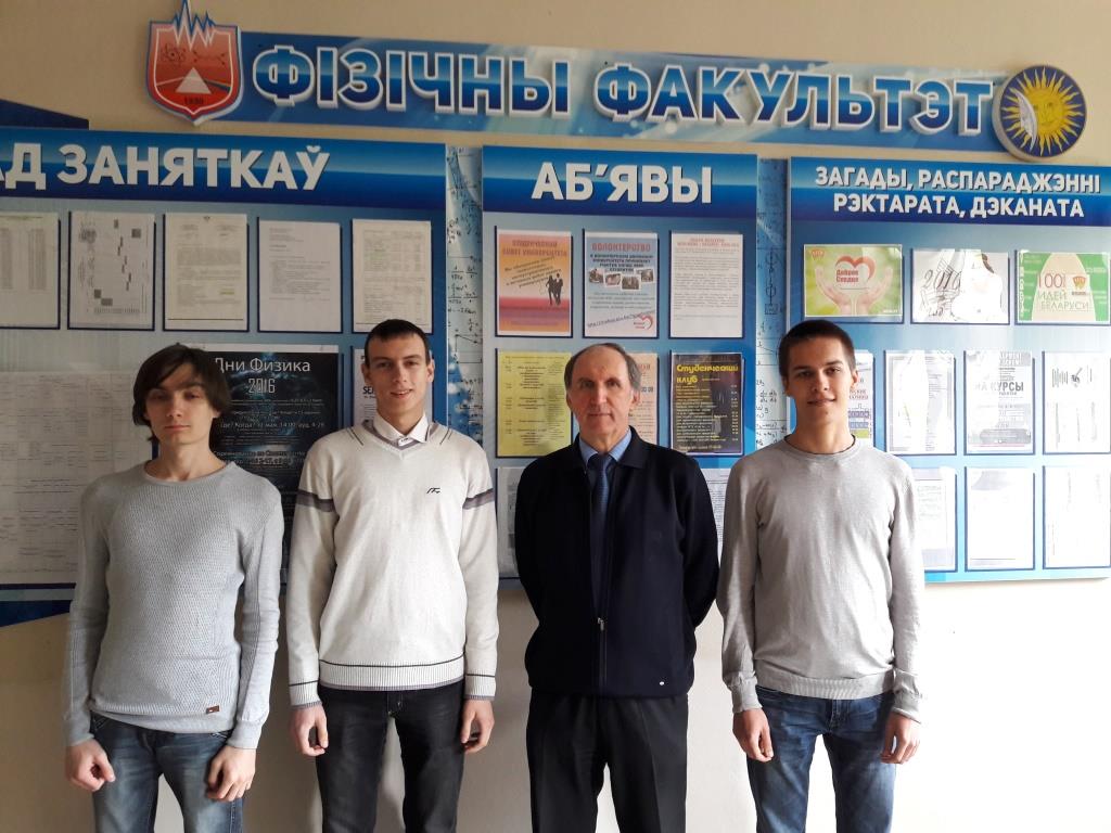 Руководитель команды - доцент кафедры теоретической физики, к.ф.-м.н. Капшай Валерий Николаевич. Активное участие в подготовке команды принял доцент кафедры общей физики, к.ф.-м.н. Шолох Владимир Федорович. |