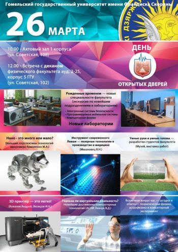 26 февраля 2016 года в ГГТУ им. П.О. Сухого прошла XIV открытая олимпиада по математике среди студентов и учащихся школ, лицеев и гимназий. Победителями олимпиады среди студентов I курса технических специальностей стали студенты первого курса физического факультета ГГУ имени Ф. Скорины Толкачев Антон Игоревич (Диплом I степени) и Бужан Андрей Вадимович (Диплом I степени). Среди студентов II-IV курсов технических специальностей победителями стали студенты физического факультет ГГУ имени Ф. Скорины Грибовский Александр Сергеевич (Диплом II степени), Михалко Иван Степанович (Диплом II степени), Бернадский Андрей Викторович (Диплом III степени). |