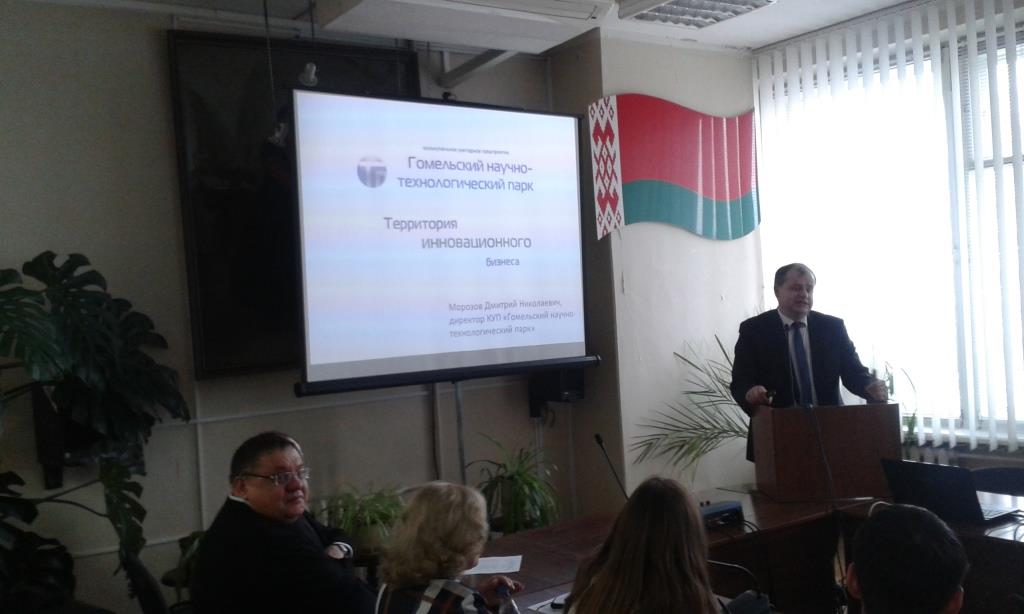 11 марта состоялась встреча студентов ГГУ с представителями КУП «Гомельский научно-технологический парк». На встрече присутствовали и студенты 4-5 курсов физического факультета. С презентацией технопарка выступил директор КУП «Гомельский научно-технологический парк» Морозов Дмитрий Николаевич. Дмитрий Николаевич рассказал присутствующим об истории и целях создания технопарка, о том как можно стать их резидентом. На встрече присутствовали представители компаний-резидентов: ООО «АйТиСаппортМи», ООО «ДжастМоби», рекламное агентство «ПозитивПромЭкспортЦентр», которые рассказали о деятельности своих компаний и пригласили студентов к себе на работу.
