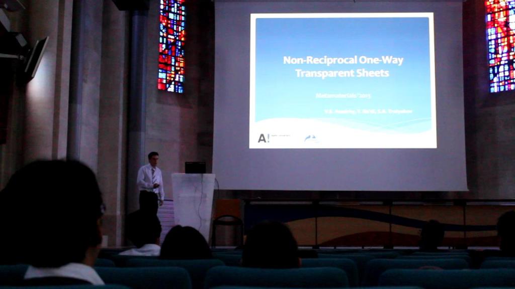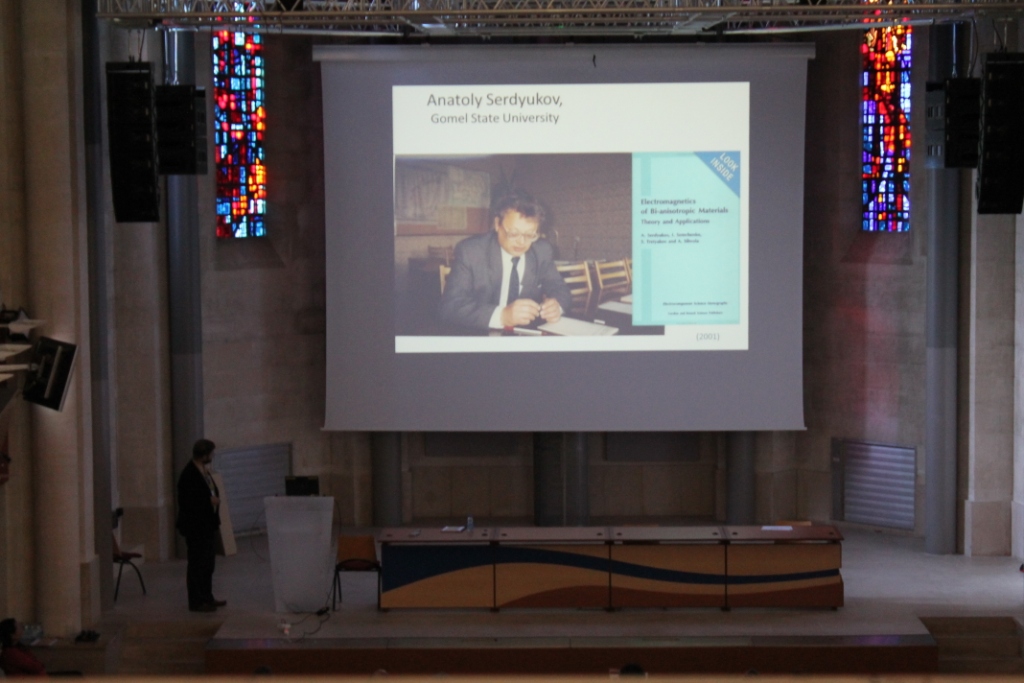 С 16 по 21 сентября в г. Бордо (Франция) состоялся 7-ой международный конгресс по современным электромагнитным материалам в микроволновом и оптическом диапазоне "Метаматериалы 2013". Данный конгресс является продолжением серии международных конференций начало которым было положено 20 лет назад в 1993 году в Хельсинки и Гомеле и состоявшийся конгресс стал юбилейным. В конференции приняли участие свыше 200 ученых, со всего мира, занимающихся вопросами создания материалов с принципиально новыми свойствами. Наш университет представлял магистрант физического факультета Виктор Асадчий, который в настоящее время в соответствии с договором учится и в университете Аалто (Финляндия) (руководитель от Беларуси – профессор И.В. Семченко, от Финляндии – профессор С.А. Третьяков). Среди других учёных с мировым именем конференцию посетил и профессор Виктор Веселаго, который является основателем данной области физики и опубликовал пионерские работы по данной тематике еще в 60-е годы 20-го века.