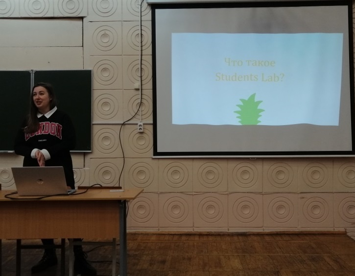 Викория Дербеева (Recruiter) познакомила студентов с компанией, ее историей и направлениями работы, пригласила всех принять участие в тренингах в рамках Student Lab.