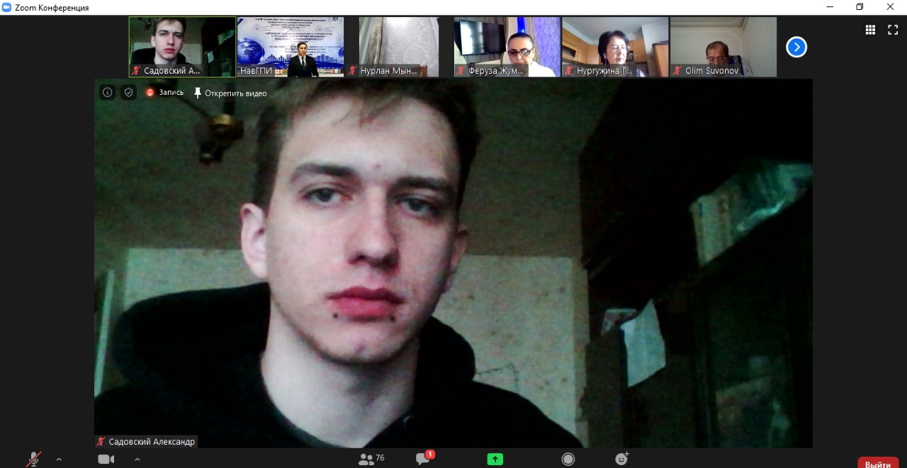 27 мая 2020 года в Навойском государственном педагогическом институте (Республика Узбекистан) состоялась Международная научная онлайн конференция на тему "АКТУАЛЬНЫЕ ПРОБЛЕМЫ НАУЧНО-ИННОВАЦИОННОГО СОТРУДНИЧЕСТВА В ПОВЫШЕНИИ КАЧЕСТВА ВЫСШЕГО ОБРАЗОВАНИЯ", в которой приняли участие старший преподаватель кафедры физического воспитания и спорта Силяева Т.С. и студент группы Ф-14пр факультета физики и ИТ Садовский А.А. с докладом "Обзор приложений для проведения дистанционных занятий". Далее материалы конференции будут изданы в виде электронной книги.
