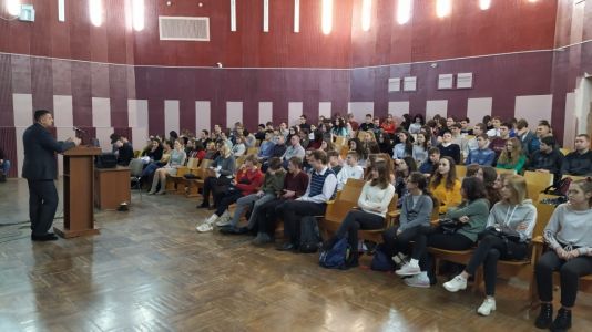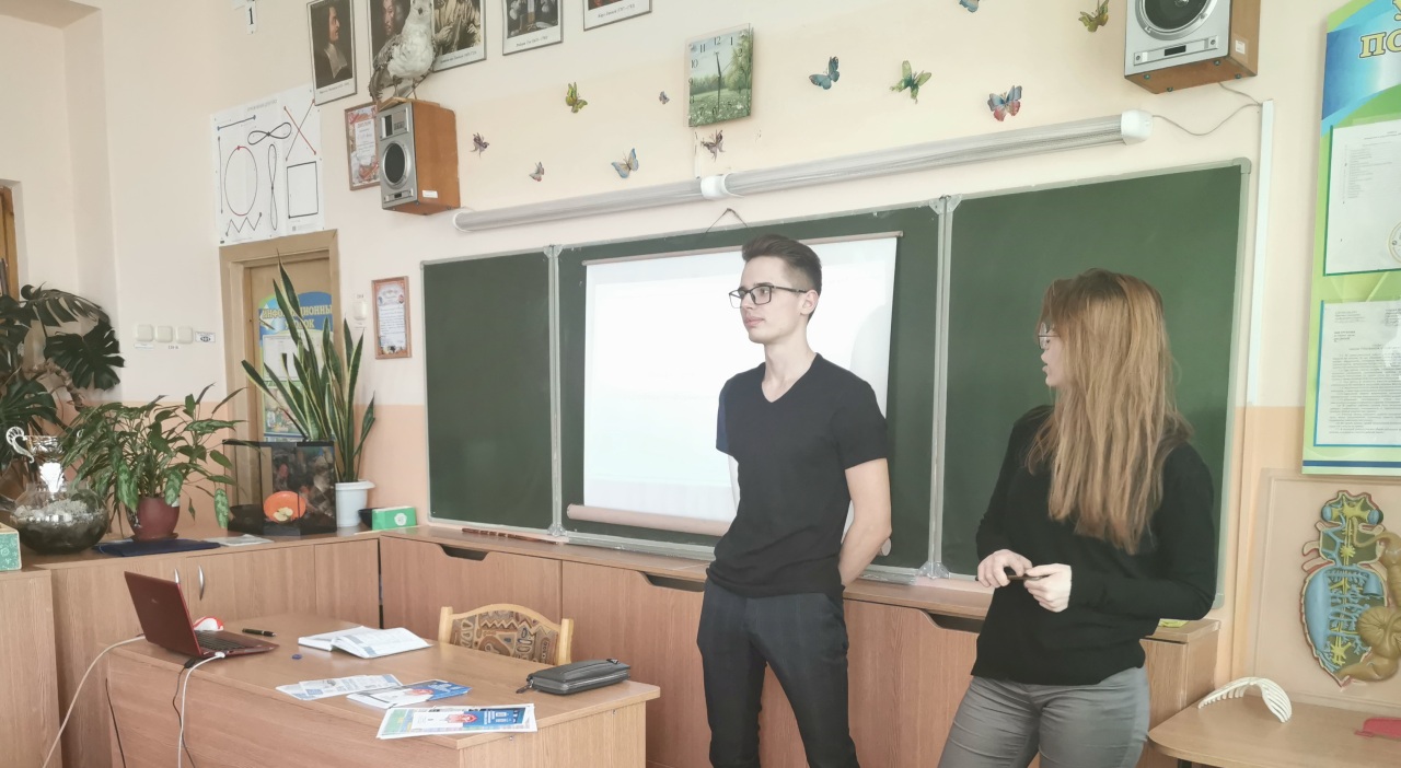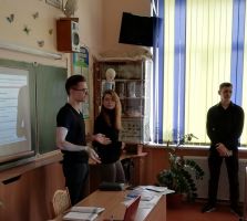 В рамках реализации единой программы факультета по профориентационной работе 10 марта студенты 3 курса специальности «Компьютерная физика» в лице Кашанской Ольги, Стрельченко Евгения и Юрченко Дмитрия вместе со старшим преподавателем кафедры оптики Дегтяревой О.В. посетили государственное учреждение образования «Средняя школа №27 г. Гомеля». На встречу были приглашены учащиеся 10 и 11 классов физико-математического профиля. Школьников ознакомили с перечнем специальностей факультета, достижениями обучающихся, как на городском, так и на международном уровнях. В докладе также была освещена информация, касающаяся возможности стажировок наиболее отличившихся студентов в университеты других стран мира. Неподдельный интерес ребят вызвала информация о не так давно открытых лабораториях на факультете физики и информационных технологий.