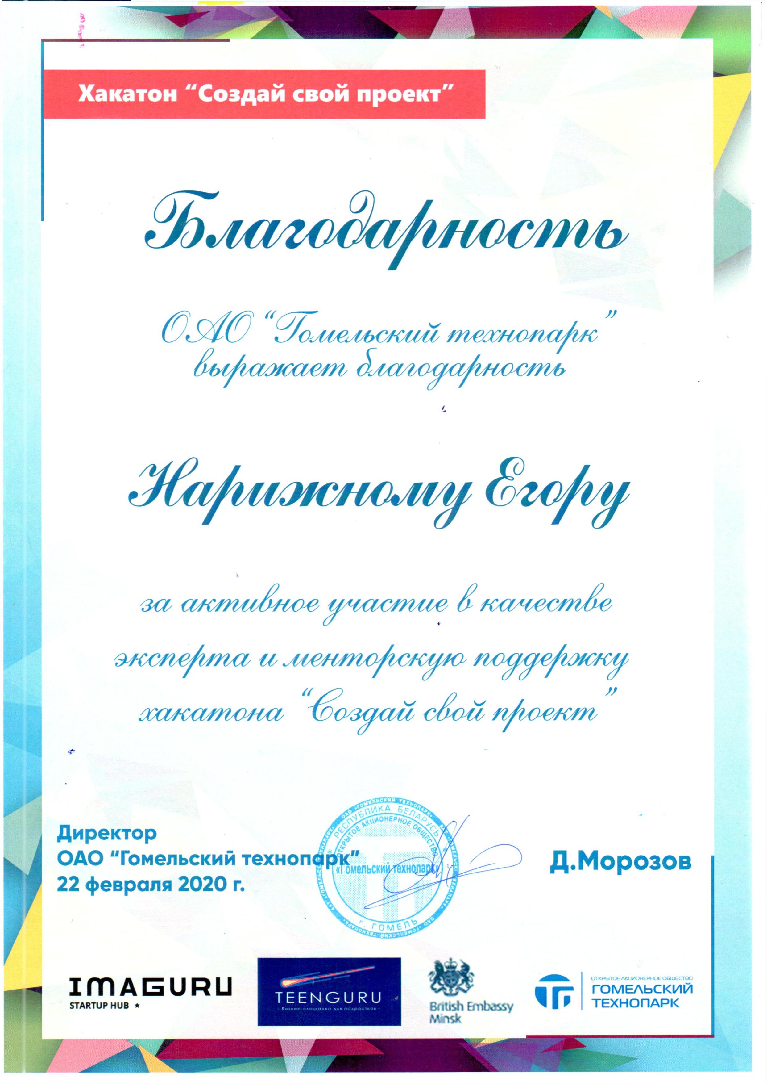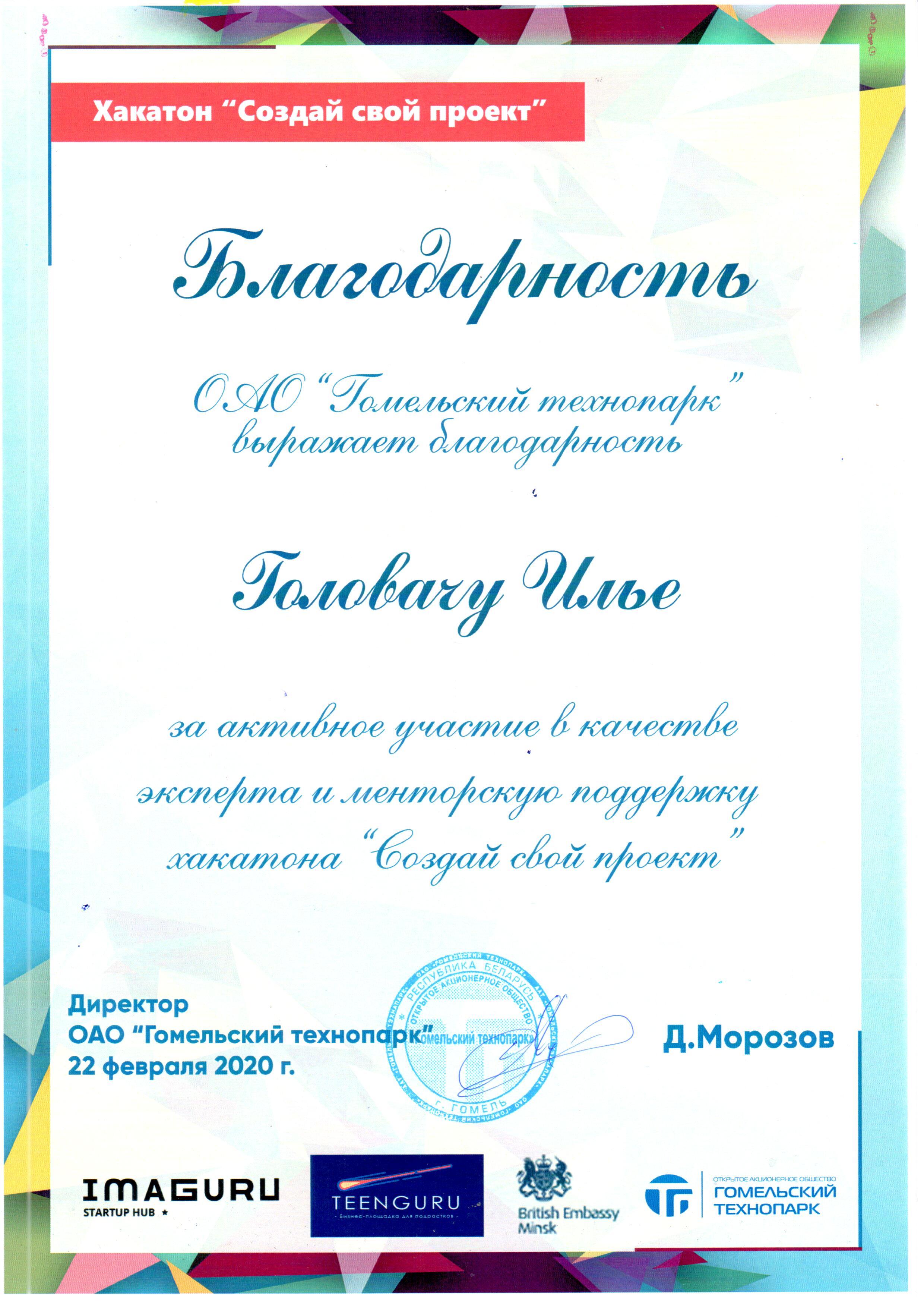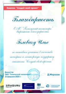 22 февраля 2020 года бизнес-академия TeenGuru совместно с Гомельским технопарком при поддержке Посольства Великобритании в Республике Беларусь организовали хакатон «Создай свой проект» для подростков 14-17 лет, которые интересуются IT-сферой, хотят получить новые знания и опыт, а также отлично провести время. От факультета физики и информационных технологий ГГУ им. Франциска Скорины в качестве кураторов групп были приглашены Головач Илья, Нарижный Егор и Зайцев Алексей.