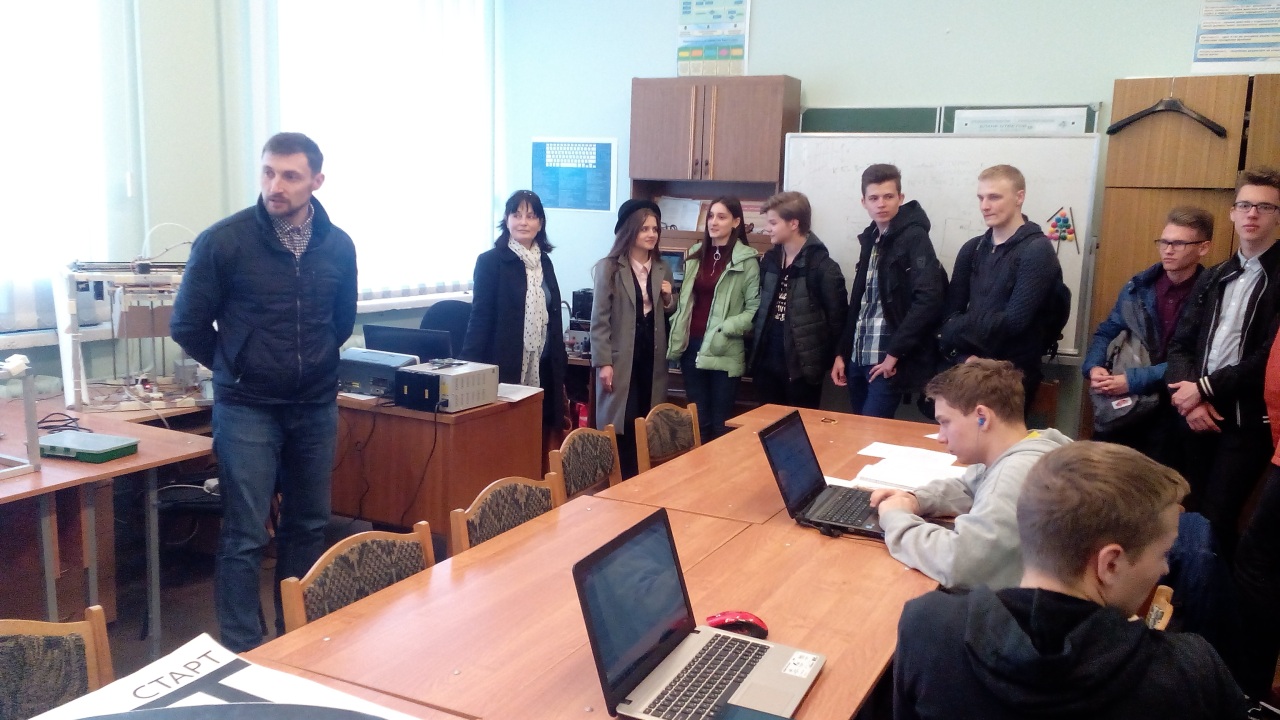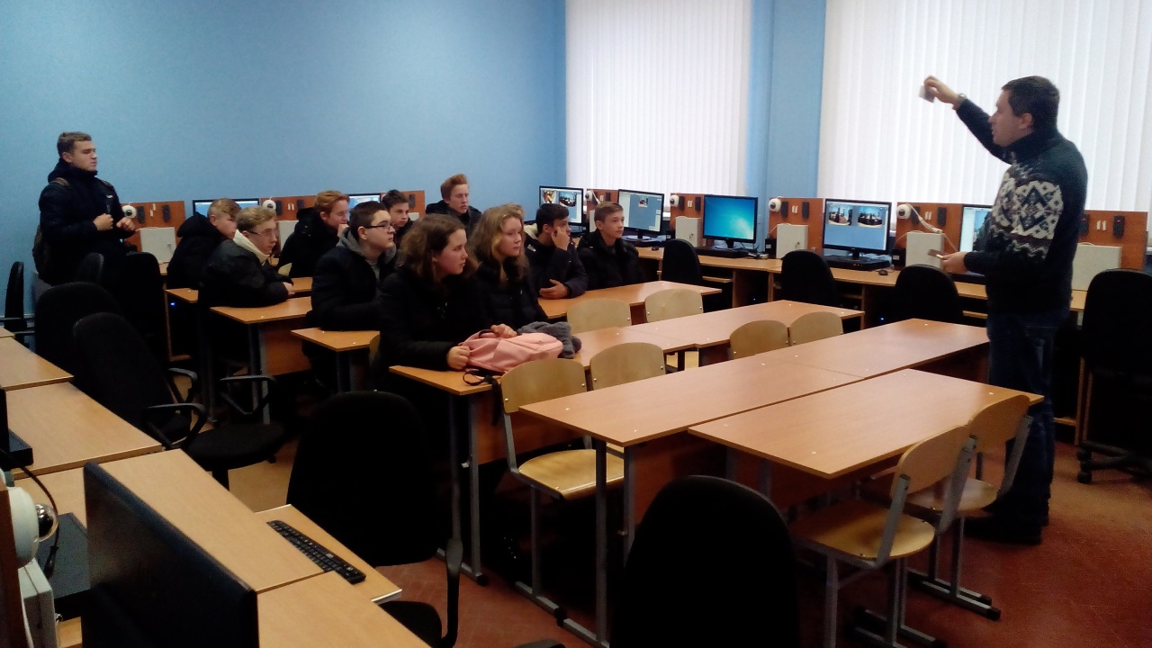 В последнее время заявки на проведение экскурсий поступают из сельских школ. На прошлой неделе факультет посетили учащиеся выпускных классов среднеобразовательной школы посёлка Иваки Добрушкого района. Ученики познакомились с новыми лабораториями специальностей «Программируемые мобильные системы», «Электронные системы безопасности». Традиционный интерес вызвала подготовка на кафедре АСОИ. Перед учащимися выступили заведующие кафедрами Шершнёв Е.Б., Левчук В.Д. и Мышковец В.Н., а также преподаватели кафедр. Экскурсия оказалась весьма познавательной и интересной. Лаборатория робототехники не оставила никого равнодушным, а в лаборатории лазерных технологий все могли попробовать себя в роли исследователя.
