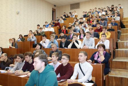 Приближается к завершению 2019 год, и всё ближе становится самый переломный момент в жизни выпускников школ и колледжей. Выпускные экзамены, тестирование – и дверь в большую жизнь. Каждый выбирает её, казалось бы, самостоятельно, однако это не вполне справедливо. На принятие решения существенное влияние оказывают родители, друзья, которые уже приняли в своё время это решение, и теперь учатся в различных ВУЗах, «сарафанное радио», наконец. Однако, ничто не заменит собственного впечатления, объективной информации, что называется - из первых рук. Поэтому на факультете физики и информационных технологий организована постоянно действующая «экскурсионная группа», в задачи которой входит обеспечение потребностей учебных заведений города и области живым общением с преподавателями факультета, непосредственным знакомством с новейшими направлениями в сфере образования на факультете, учебными и научными лабораториями кафедр, программами специальностей. Участие преподавателей факультета в мероприятиях по линии народного образования позволило распространить информацию о факультете далеко за пределы города.