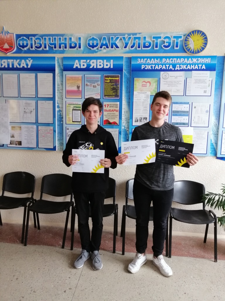 Поздравляем студентов факультета физики и ИТ Малеваного Максима (МС-12) и Буякевича Данилу (СБ-15) вышедших в финал Республиканской региональной олимпиады по спортивному программированию. Желаем им победы в финале, который состоится 19 октября 2019 года в офисе компании Andersen в городе Минске.