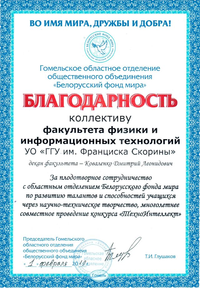 XX областной конкурс "ТехноИнтеллект" прошел на факультете физики и информационных технологий ГГУ имени Ф. Скорины. На суд жюри свои разработки вынесли более 100 юных изобретателей из 18 районов Гомельщины. По сложившейся традиции, участники "ТехноИнтеллекта" состязались в теоретическом туре и научно-практической конференции. Последняя предполагала конкурс авторских проектов в секциях «техническое моделирование», «техническое конструирование», «радиоэлектроника, электротехника и энергетика, робототехника, автоматика и интеллектуальные системы», «мультимедийные технологии», «научные исследования и эксперимент, астрономия», «информатика и программирование, вычислительная техника».