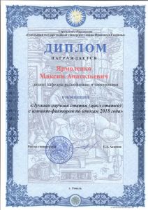 Доцент кафедры радиофизики и электроники Виталий Сидский удостоен благодарности Министерства образования 24 января 2019 года за значительный личный вклад в развитие науки и инновационной деятельности.