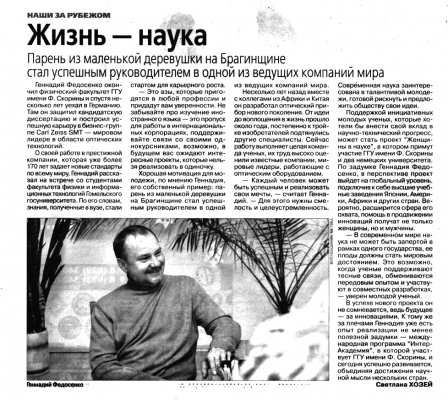 Геннадий Федосенко закончил физический факультет ГГУ имени Ф. Скорины и спустя несколько лет уехал в Германию. Там он защитил кандидатскую диссертацию и построил карьеру в бизнес-группе Carl Zeiss SMT – мировом лидере в области оптических технологий. О своей работе в престижной компании, которая уже более 170 лет задает новые стандарты по всему миру, Геннадий рассказал на встрече со студентами факультета физики и информационных технологий нашего университета.