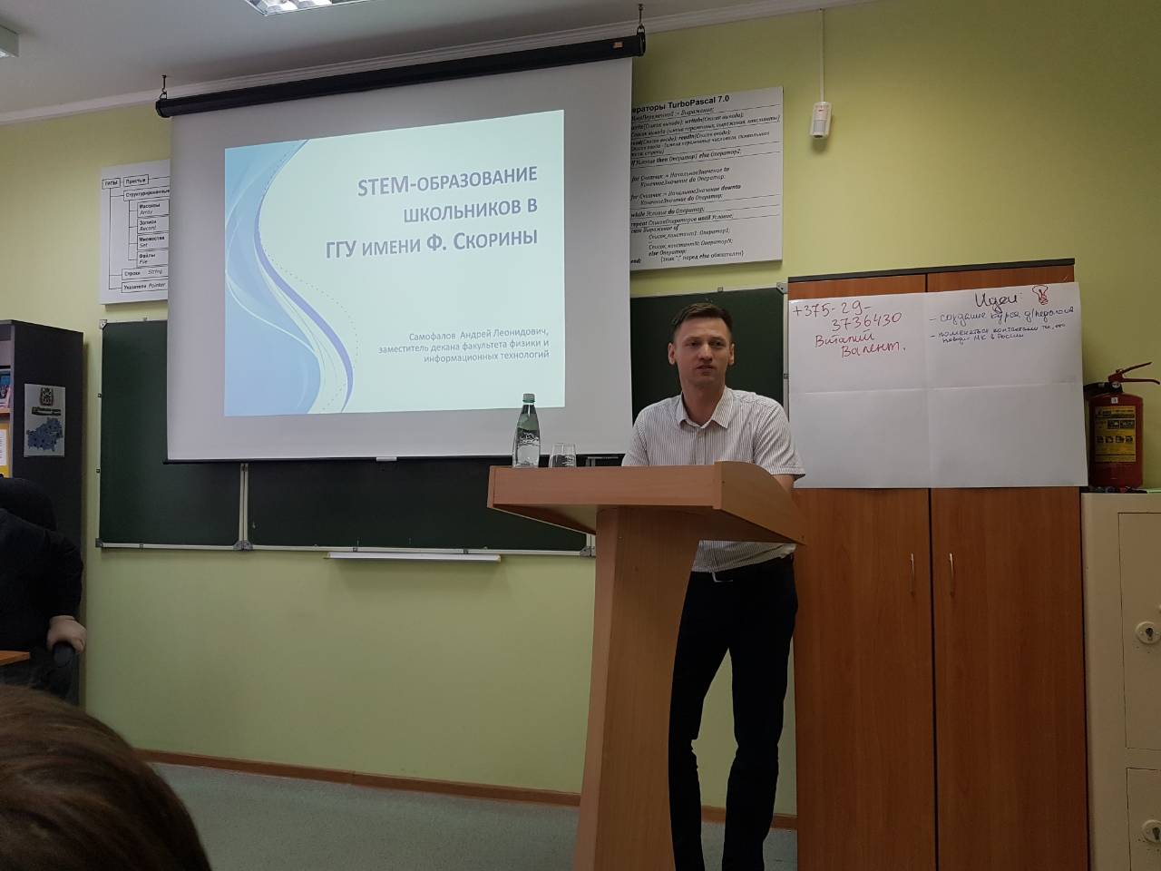 От ГГУ имени Ф. Скорины на конференции выступил с докладом «STEM-образование школьников в ГГУ имени Ф. Скорины» заместитель декана факультета физики и информационных технологий Самофалов А.Л.