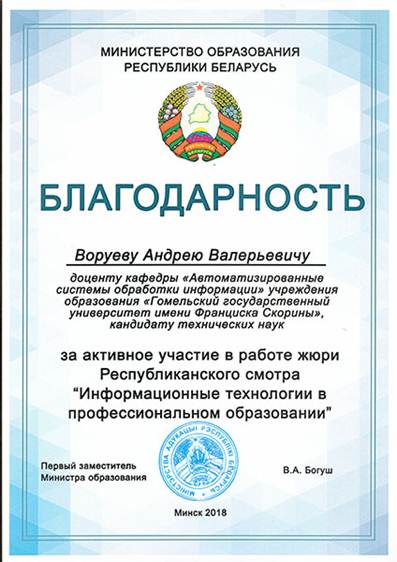 Доцент кафедры АСОИ факультета физики и информационных технологий Воруев А.В. принял участие в работе жюри IV республиканского смотра «Информационные технологии в профессиональном образовании».