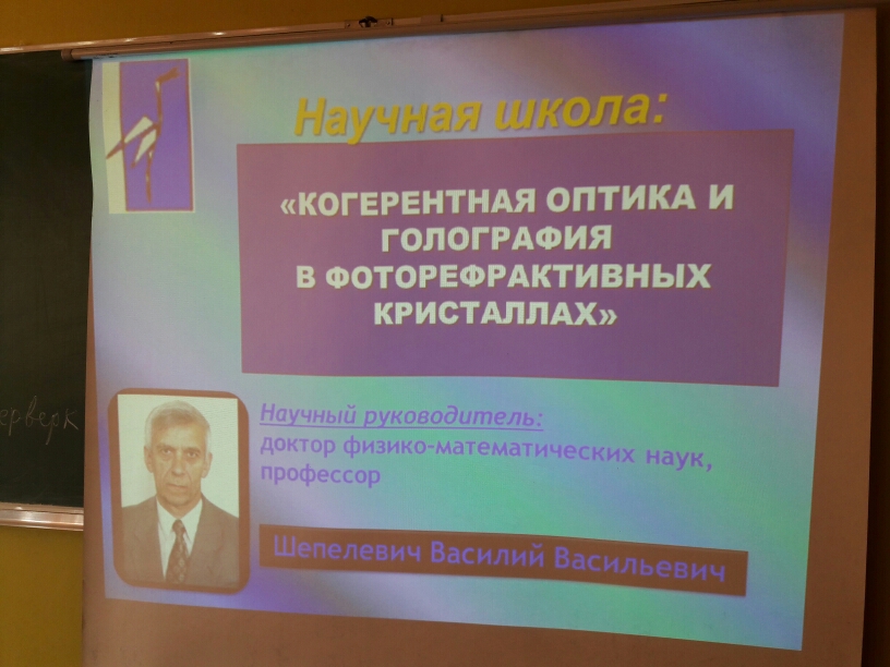 Василий Васильевич рассказал о методике применения наглядных демонстраций на уроках физики в средней школе и о своей научной школе «Когерентная оптика и голография в фоторефрактивных кристаллах».
