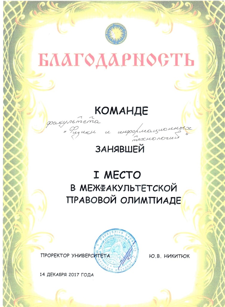 14.12.2017 в корпусе №2 проходила командная олимпиада по Основам Права. В ней участвовали студенты разных факультетов. Не обошлось и без факультета физики и информационных технологий.