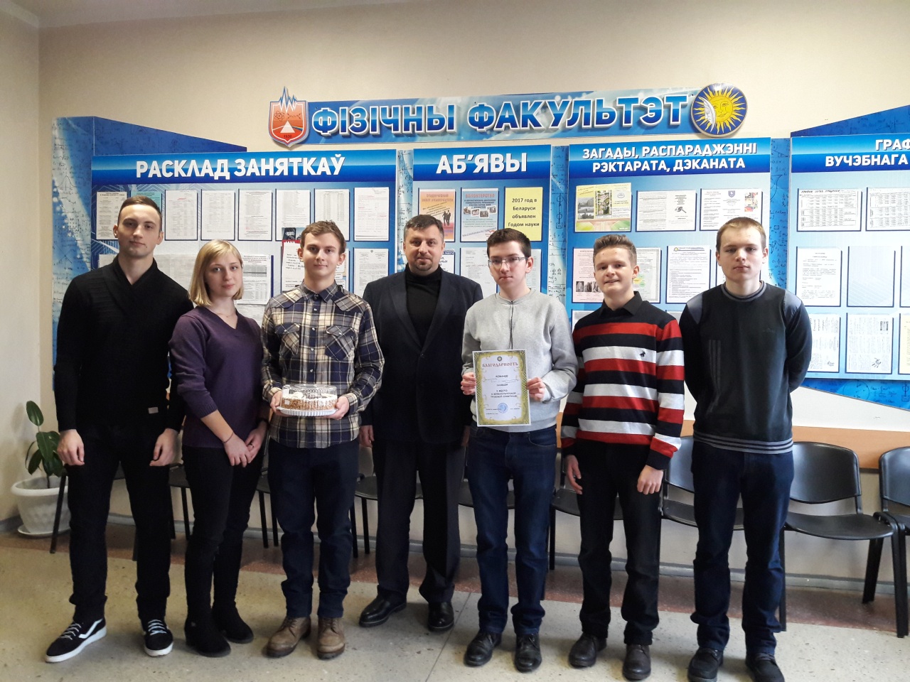 На соревнованиях факультет физики и ИТ представляли доцент кафедры оптики Балмаков Алексей, студенты Кордиков Александр (СБ-35), Панков Эдуард (МС-22), Дашкевич Сергей (АС-46), Петрович Андрей (АС-46), Грузовец Александр (Ф-33п), а также выпускник кафедры АСОИ 2012 года Алилуев Юрий.