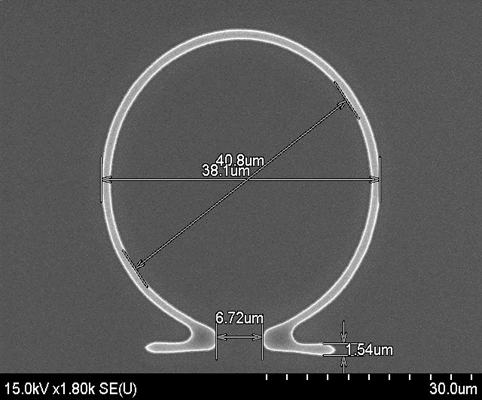 Фотография образца метаматериала, образованного омега-подобными элементами (увеличение 200х)